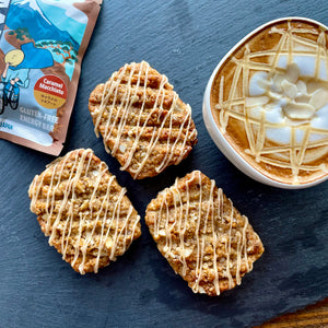 MANABAR / Caramel Macchiato Flavorマナバー/キャラメルマキアート味開封して最初に感じるのが、コーヒーの香り。今回はキャラメルとコーヒーを組み合わせたアイシングを表面に施し、生地にコーヒー豆やカシューナッツを加え、深い甘さとコクを味わえるキャラメルマキアートの味...
