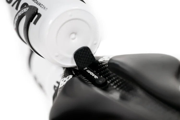 このブラケットはオフセットを設け、ライダーがサドル上で十分なスペースを確保できるようにし、さらに2つのボトル保持ループを内蔵しているので、水分や栄養の損失を防ぎます。